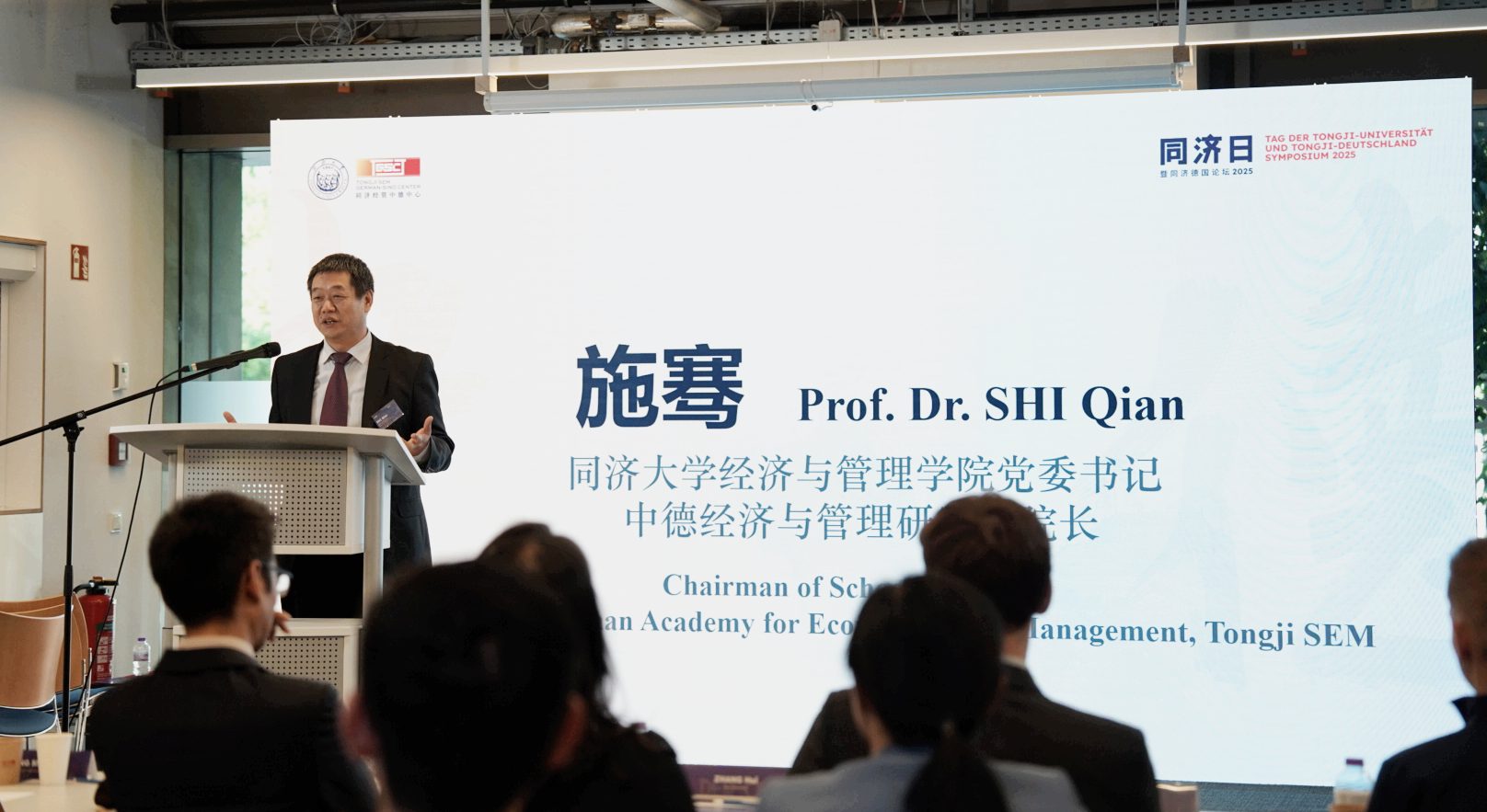 Li Juntao, Chairman of XJ Electric Corporation delivered a video speech to congratulate on the establishment of SEM-IJIC. Fang Shouen, Chairman of the University Affairs Committee of Tongji University, Shi Qian, Dean of the Sino-German Institute for Economics and Management of Tongji University and Liang Jian, Vice Dean of the School of Economics and Management witnessed the unveiling ceremony on site in Berlin.