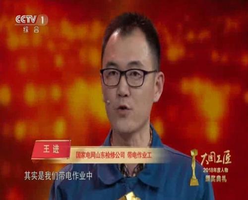3月1日,由中华全国总工会联合中央广播电视总台录制的“大国工匠2018年度人物”颁奖典礼在央视综合频道播出,央视新闻新媒体同步播出。国网山东省电力公司检修公司一线带电作业员工王进光荣入选,是本次唯一入选的电力行业职工。