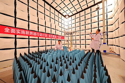 国网山东电力技术人员在3M法电波暗室开展电磁兼容检测研究。