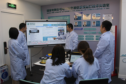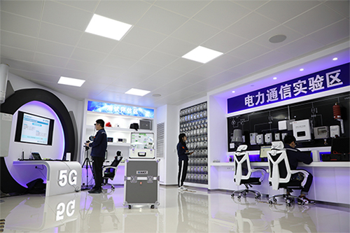 国网辽宁电科院科研人员在电力系统5G通信技术应用实验室进行试验。