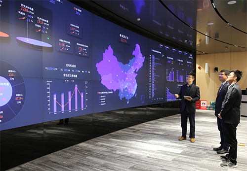 北京电力交易中心员工通过电力交易平台分析新能源消纳情况。