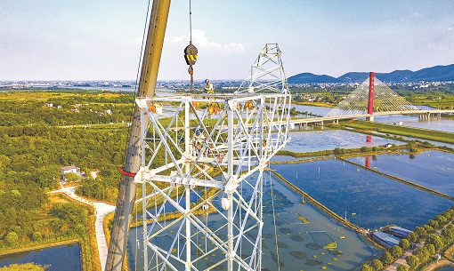 与此同时,在重庆境内正在施工的白鹤滩送江苏±800千伏特高压直流工程进入到了组塔阶段,施工没有因高温而中断。