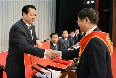 图为市委书记王树山向许昌市第八届“最高科学技术成就奖”获奖者颁奖。