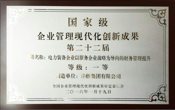 4月17日,第二十二届全国企业管理现代化创新大会在北京召开,会议发布和推广了国家级企业管理现代化创新成果。许继集团有限公司申报的“电力装备制造企业以企业战略为导向的财务管理提升”荣获一等奖。这是许继集团继1998年《现代企业量化动态人事管理》项目荣获第五届“全国企业现代化管理创新成果”一等奖之后,再次获此殊荣。