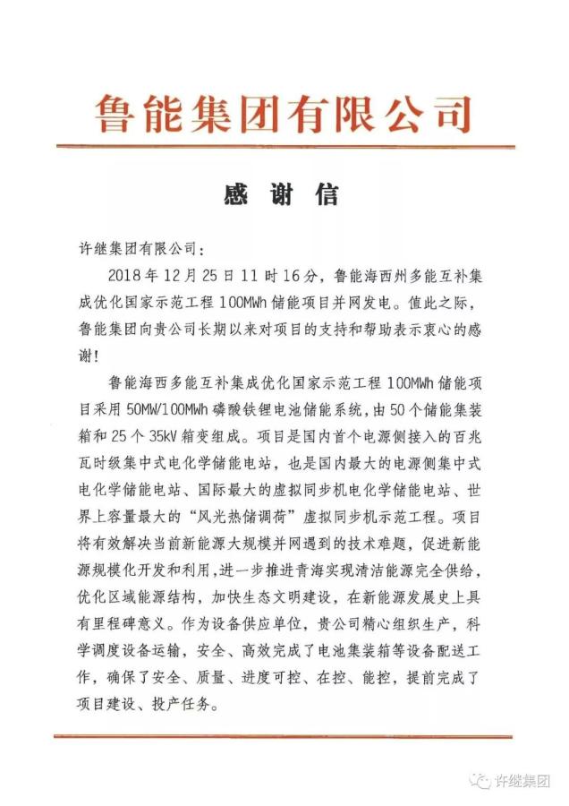许继集团承担50兆瓦/100兆瓦时储能系统建设任务,标志着许继集团在大规模电池储能系统在新能源领域的应用迈出关键一步,为解决新能源消纳作出了示范。