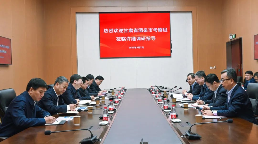 3月7日,甘肃省酒泉市市委书记王立奇率队到许继集团考察调研,与党委书记、董事长孙继强就新能源装备制造、新能源运维、源网荷储项目及新能源场景应用等进行座谈交流。酒泉市市政府副市长石峰,许继集团党委委员、副总经理张海龙、赵奕、樊占峰参加交流。