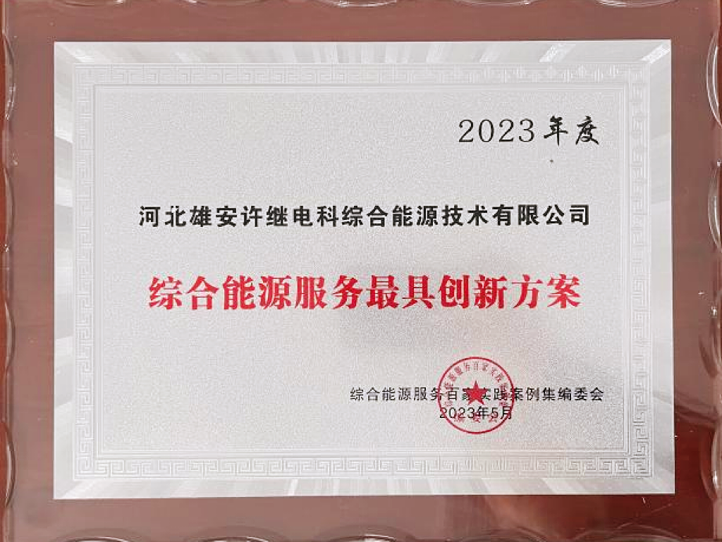 5月26日,第三届综合能源服务实践优秀案例大奖揭幕,雄安许继参评的雄安新区白洋淀东北部光伏接入配套10kV电网改造工程技术方案、神木恒聚鑫1×50兆瓦余能综合利用发电工程技术方案荣获2023年度综合能源服务最具创新方案奖,并入选《综合能源服务百家实践案例集》。雄安许继分获2023年度优秀双碳实践服务商和2023年度中国综合能源服务领域优秀示范企业。