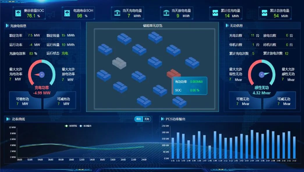 针对大规模电化学储能电站海量数据分析与电站运维管理,配套智能、高效的全景监测,融合动态工况的状态实时感知、健康状态评估、故障预警,对储能电池进行有效的安全性和可靠性管理。产品支撑从单体到电站的全量设备、测控对象的状态实时感知、健康状态评估、故障预警,建立不同电池温度、内阻、故障等“特征指纹”数据集,形成特定型号电池的“电池画像”。通过评估电池一致性,首末端充放电特性,实现对电池系统高效地、有针对性的运维管理,为储能电站参与电网优化控制提供数据依据。产品应用于西藏日喀则工业园储能项目、娄底新能源配套电化学储能电站等示范工程。总体国际先进,在实现大型储能电站电芯动态秒级存储、全生命周期电池在线评估和分析方法等方面达到国际领先水平。