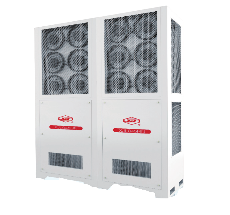 提出了 “1+1”变频双系统储能液冷集成化设计方案,通过全环温热管理系统、优化微通道冷凝散热、双氟一水高效蒸发冷却等设计,45℃极端高温下能效系数达2.25,全年综合能效比达5.32。通过“L型”风机风室设计方案,有效的提升了芯体的进风面积,解决了制冷系统夏季高压保护问题,显著降低了液冷机组运行噪声。确保整个储能系统安全、高效、稳定运行。总体处于国际领先水平。