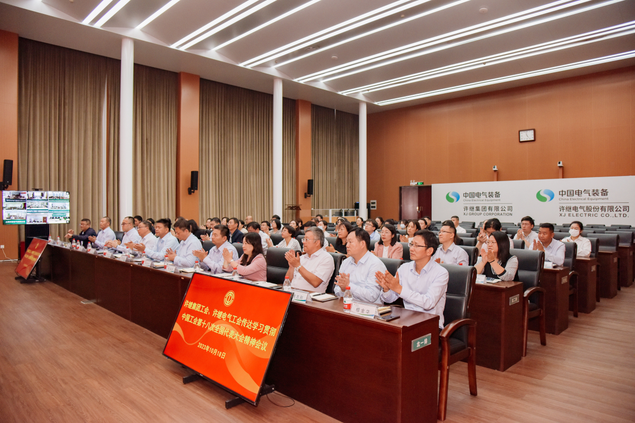 10月18日下午,许继集团工会、许继电气工会召开专题会议,第一时间传达学习中国工会第十八次全国代表大会精神,并对做好贯彻落实工作作出安排部署。党委副书记、纪委书记、工会主席史洪杰同志出席会议并讲话。白慧同志作为中国工会第十八次全国代表大会参会代表,传达会议精神并分享参会感受。