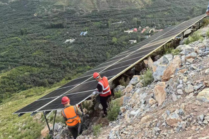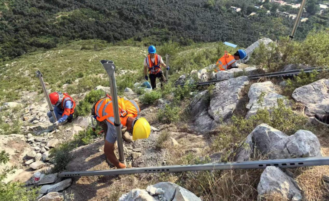 华能满城300兆瓦林光互补项目位于河北省保定市满城区,是许继目前所承接光伏项目中规模最大的山地光伏项目,也是河北近年开工建设的集中式山地光伏项目中地形环境最复杂、施工难度最高的工程。该项目施工区域为山地,平均陡度均在40度以上,山体为碎石土覆盖白云岩;同时该项目工期紧、任务重、作业面较多,涵盖光伏区、升压站、储能区、送出线路、集电线路等多项工程。为确保任务达成,现场7个作业面同时开工,力争高水平投产。项目建成后,每年上网电量44981.5万kWh,节约标煤12.57万吨,减排二氧化碳约36.16万吨、烟尘约15.32吨、二氧化硫约53.37吨、氮氧化物约76.56吨。