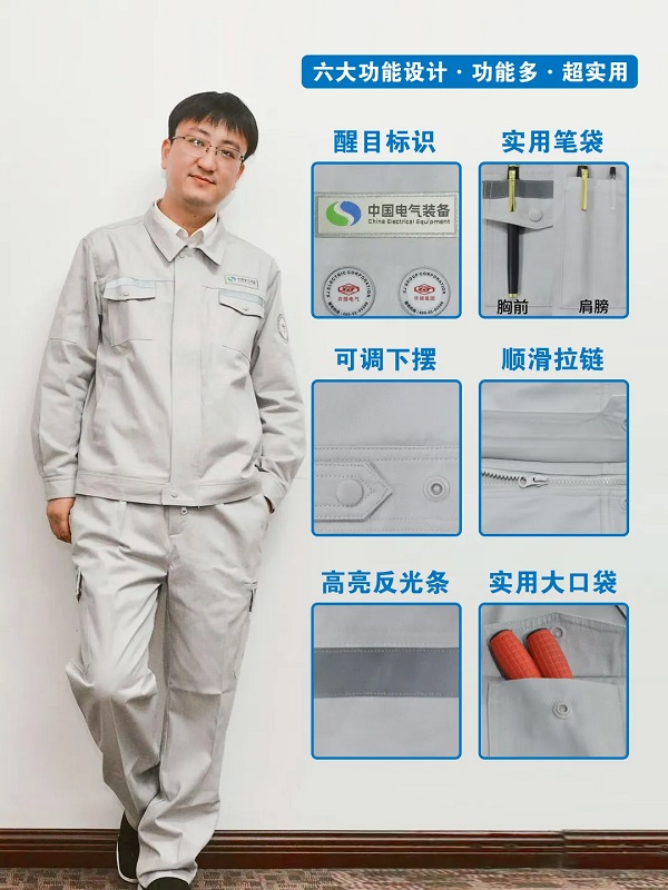 新工装采用“科技灰”现代感主色调,融合安全耐用功能,突显公司标识、反光条等元素,通过建立数据库实现量体裁衣,搭配方领、笔袋、双拉链等细节设计,从视觉上充分体现出科技感和现代感,彰显出许继人的专业态度。