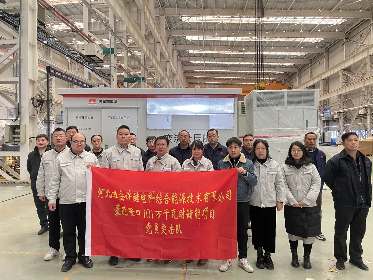 本次储能设备供货,是许继集团储能产业的重要里程碑。面对时间紧、任务重的挑战,许继集团迅速成立党员突击队,凭借深厚能力与经验,夜以继日、艰苦奋战,仅用39天就完成了设备交付,再次展现了许继速度的力量。