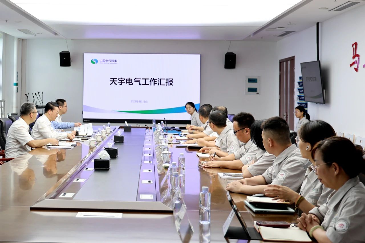 为扎实推进深入贯彻中央八项规定精神学习教育在基层走深走实,6月18日,中国电气装备党委副书记孟汉峰到天宇电气开展调研,深入了解企业党的建设工作和生产经营发展情况,听取工作汇报,并与企业领导班子座谈交流。许继集团党委副书记胡四全参加调研。