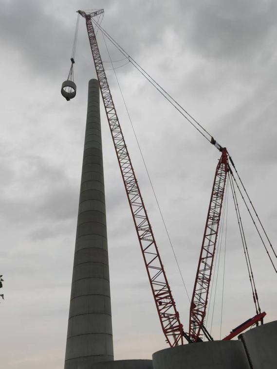 引入1300吨履带式起重机,搭载激光测距与北斗定位系统,将塔筒对接误差精准控制在2毫米以内,攻克混凝土段高空连接精度控制难题。