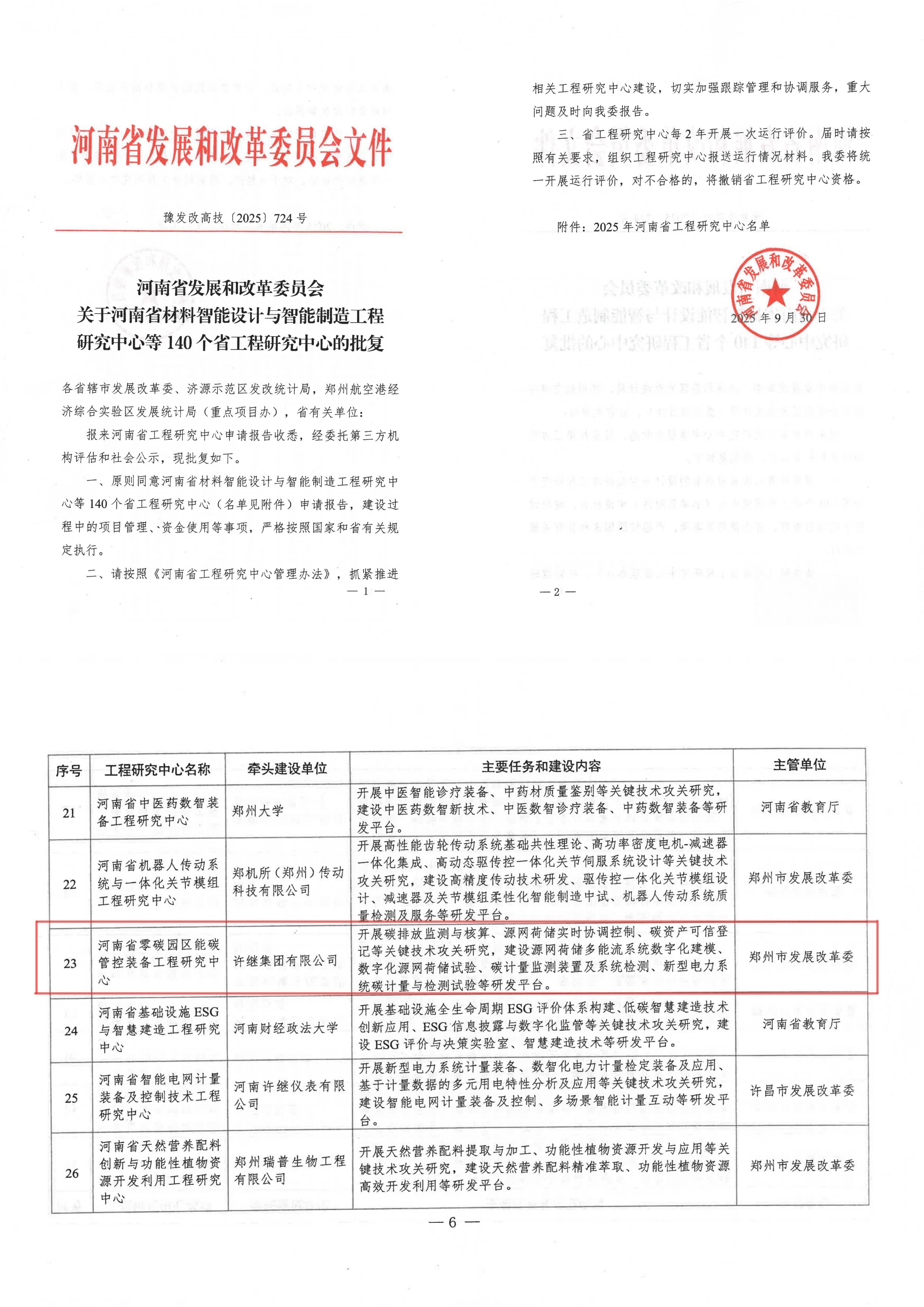 近日,河南省发展和改革委员会发布了《关于河南省材料智能设计与智能制造工程研究中心等140个省工程研究中心的批复》,由许继集团牵头申报的“河南省零碳园区能碳管控装备工程研究中心”顺利通过河南省发改委评审,正式获批成立。标志着许继集团省部级以上创新平台总数突破20个。