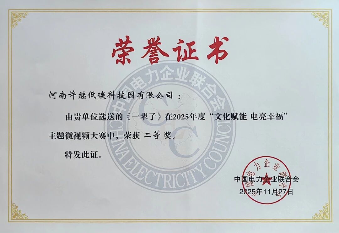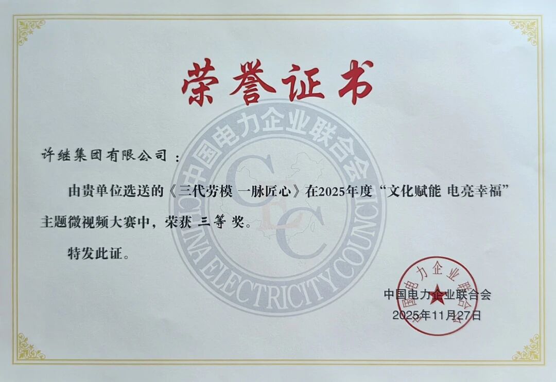 11月27日,由中国电力企业联合会、电力文化艺术协会联合主办的“文化赋能 电亮幸福”主题微视频大赛在北京举行。许继集团选送的《一辈子》《三代劳模一脉匠心》分别荣获微电影、短视频类二、三等奖。